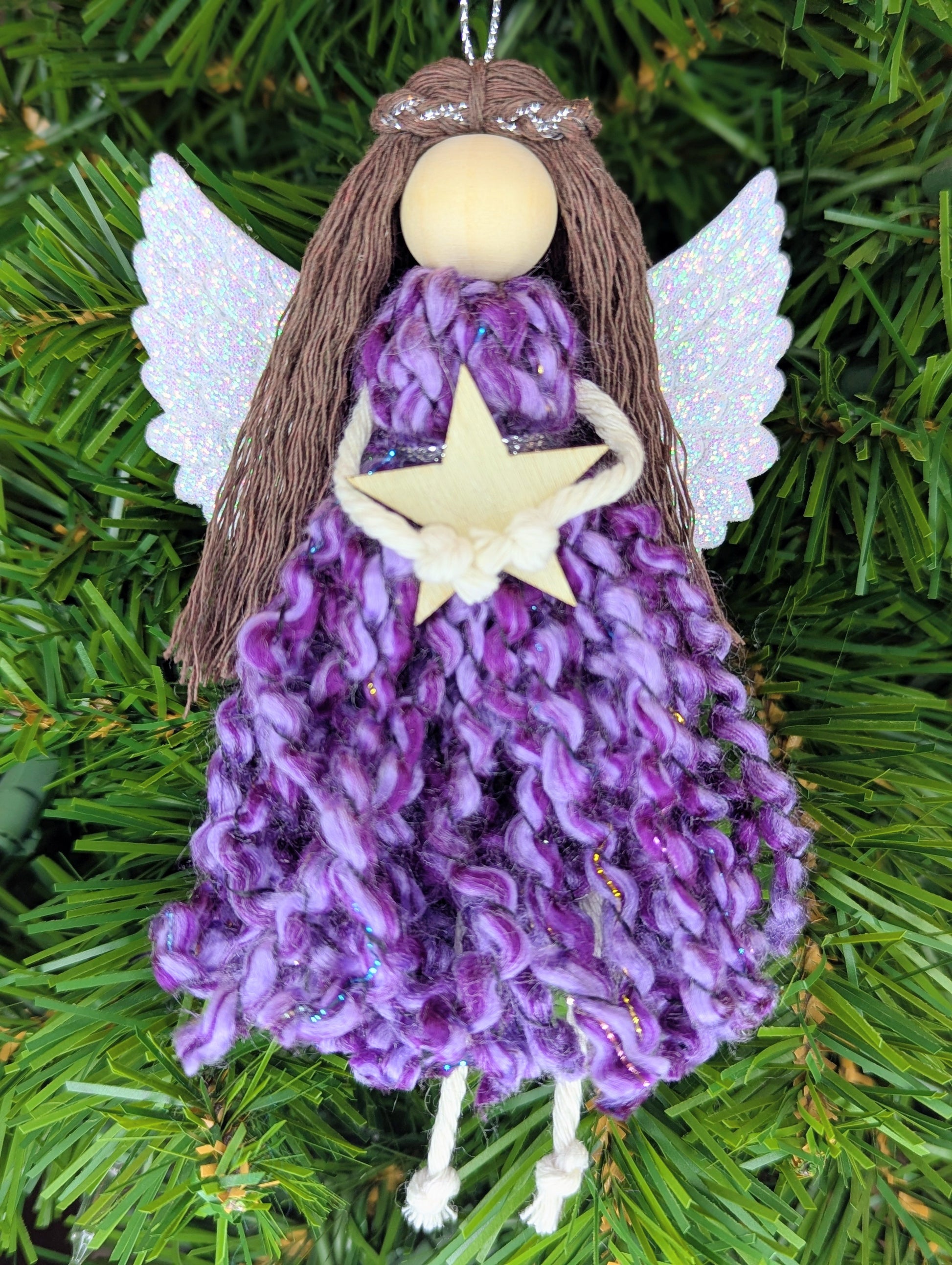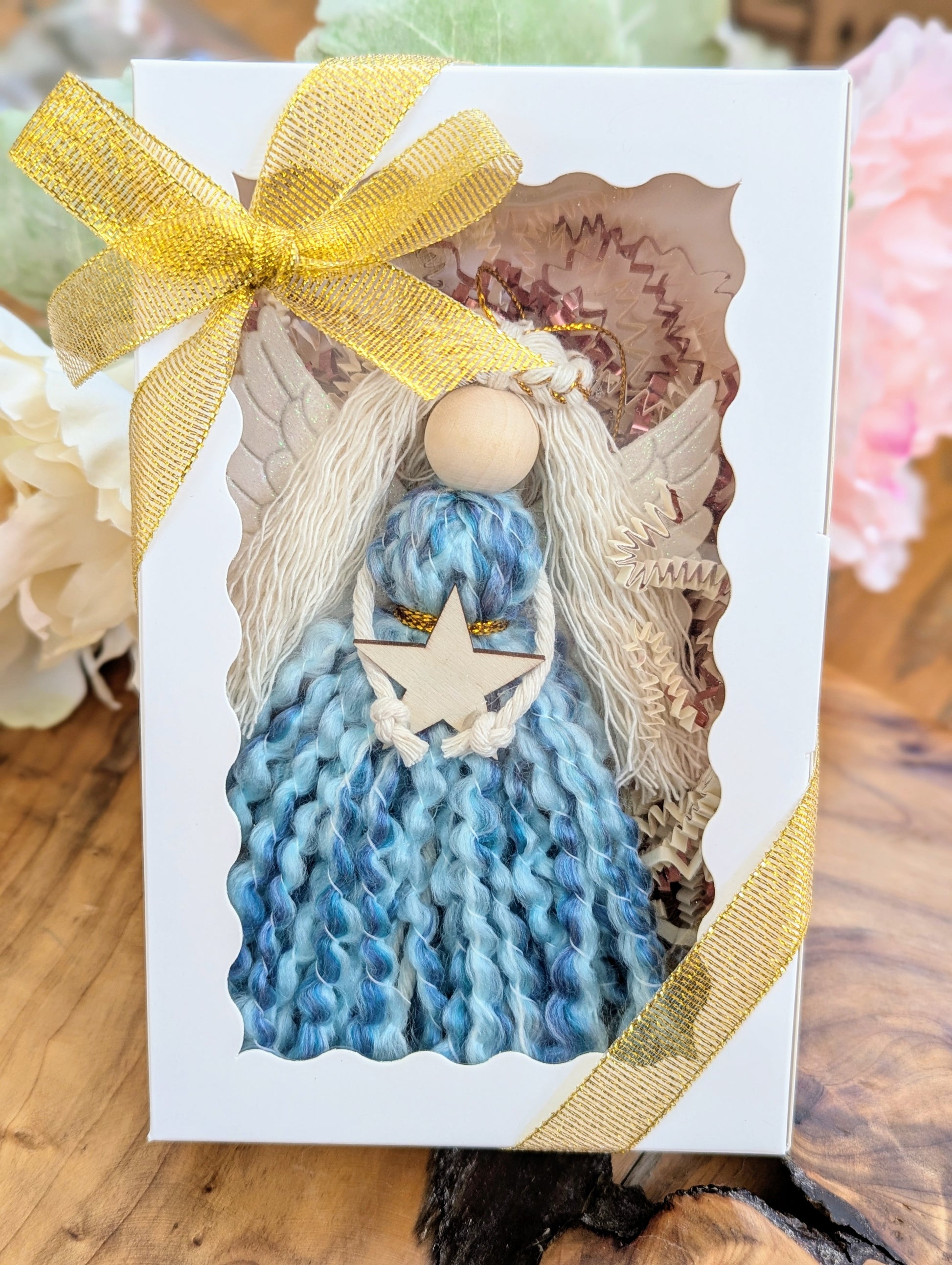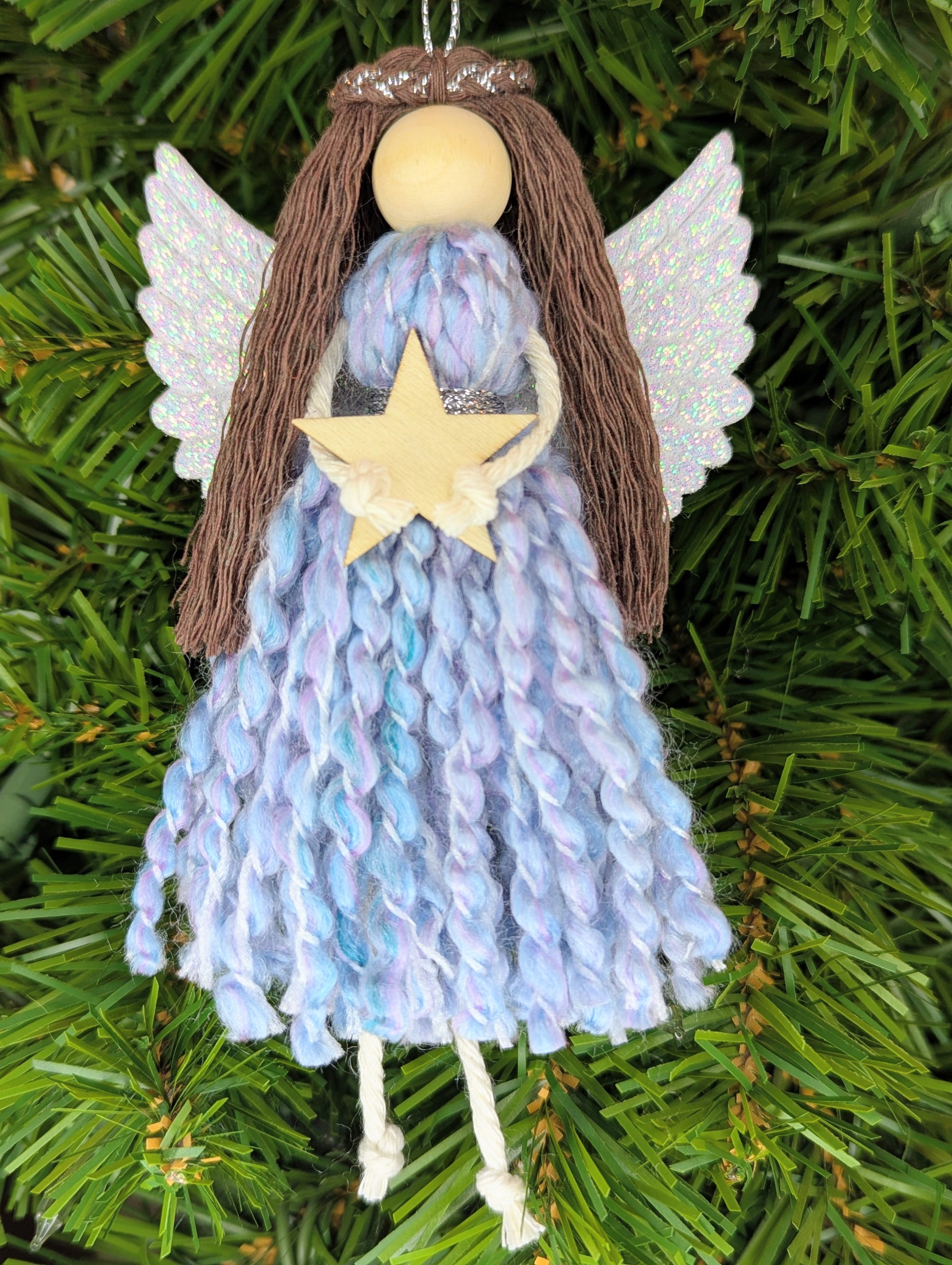 This angel doll ornament radiates both elegance and sweetness. With her shimmering glitter wings and a wooden star in hand, she makes a thoughtful and charming addition to your tree or any space, bringing warmth and beauty wherever she’s displayed.