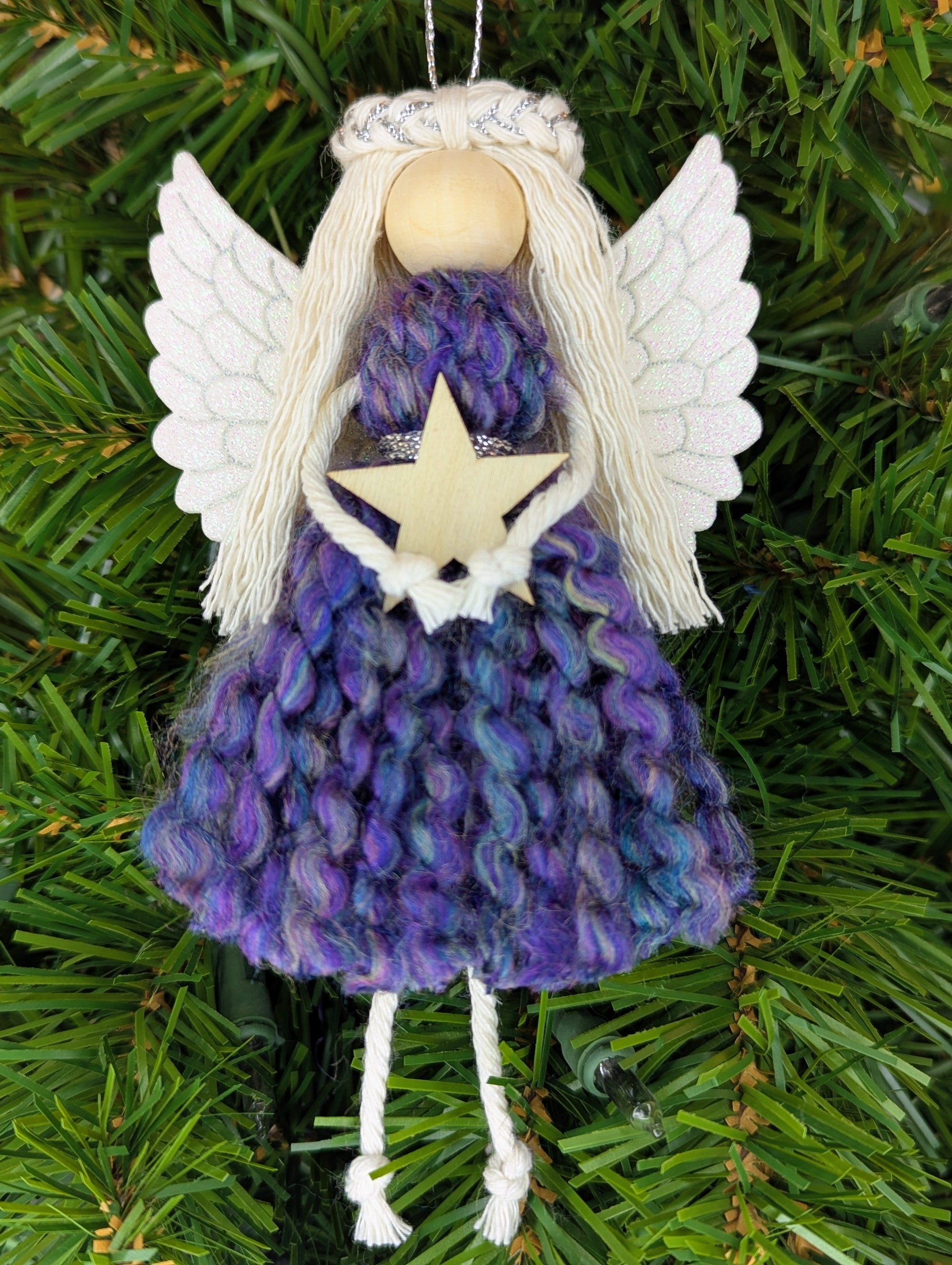 This angel doll ornament radiates both elegance and sweetness. With her shimmering glitter wings and a wooden star in hand, she makes a thoughtful and charming addition to your tree or any space, bringing warmth and beauty wherever she’s displayed.